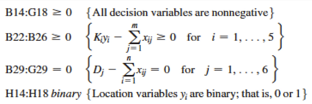 - ye = 1 jika gudang terletak di tempat e, 0 sebaliknya