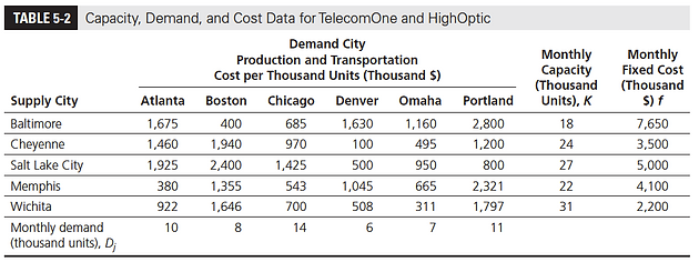 optimal TelecomOptic ditampilkan pada table 5-4. Tim rantai pasokan